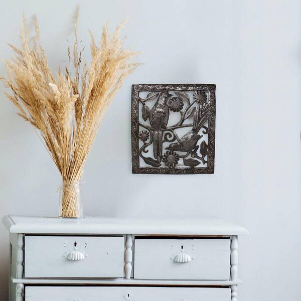 Two Birds Ringed Haitian Steel Drum Square Wall Art