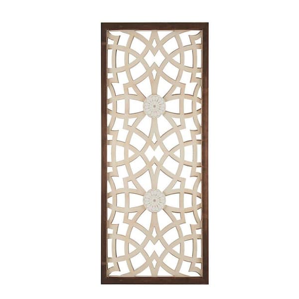 • Farmhouse style wall decor with a geometric fretwork pattern