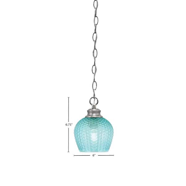 Tyler 60-Watt 1-Light Brushed Nicke Chain Mini Pendant Light with Turquoise Textured Glass Shade