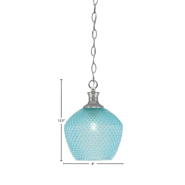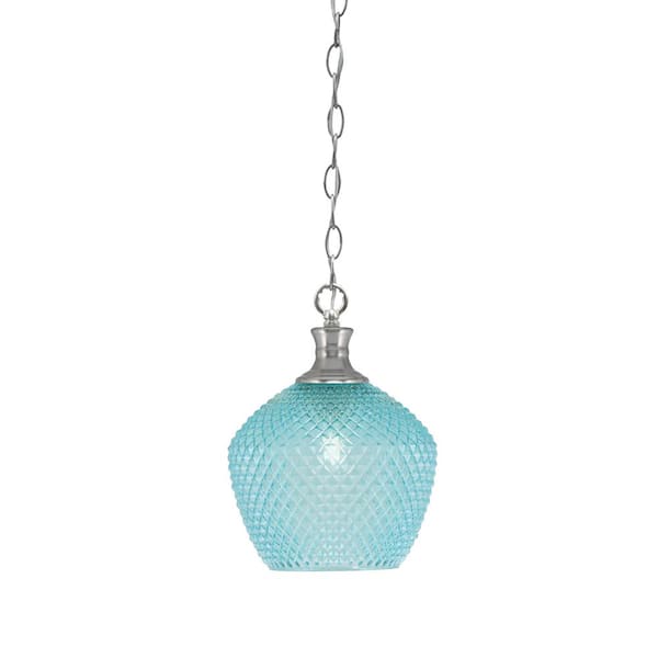 Tyler 60-Watt 1-Light Brushed Nickel Chain Mini Pendant Light with Turquoise Textured Glass Shade