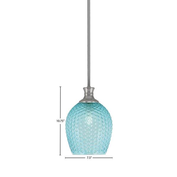 Tyler 60-Watt 1-Light Brushed Nickel Stem Mini Pendant Light with Turquoise Textured Glass Shade