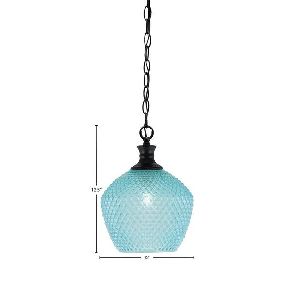 Tyler 60-Watt 1-Light Matte Black Chain Mini Pendant Light with Turquoise Textured Glass Shade