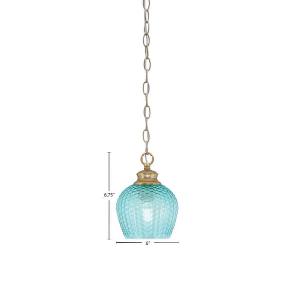 Tyler 60-Watt 1-Light New Age Brass Chain Mini Pendant Light with Turquoise Textured Glass Shade