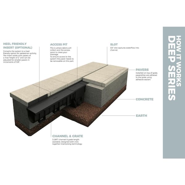 Deep Series Invisible Edge Black Drainage Pit and Catch Basin for 5.4 in. Modular Trench and Channel Drain Systems