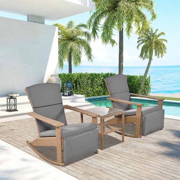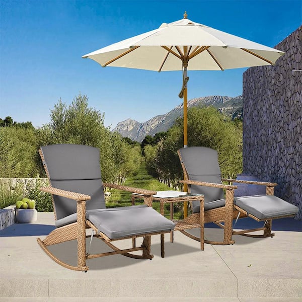 U_Style Gray Adjustable Wicker Outdoor Rocking Chair with Coffee Table, Suitable for Backyard, Garden