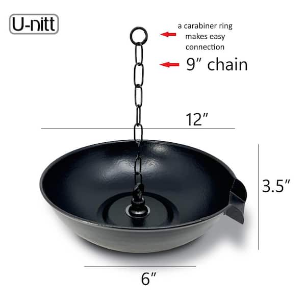 12 in. Black Rain Chain Anchoring Basin: Spill Bowl with Flat Scupper