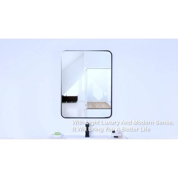 24 in. W x 32 in. H Modern Rectangular Aluminum Framed Wall Bathroom Vanity Mirror in Black