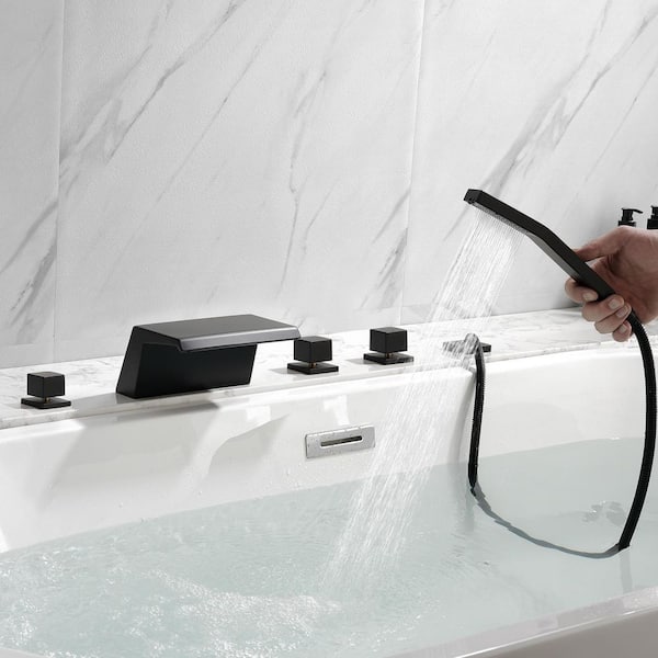 3-Handle Deck-Mount Roman Tub Faucet with Hand Shower in Matt Black