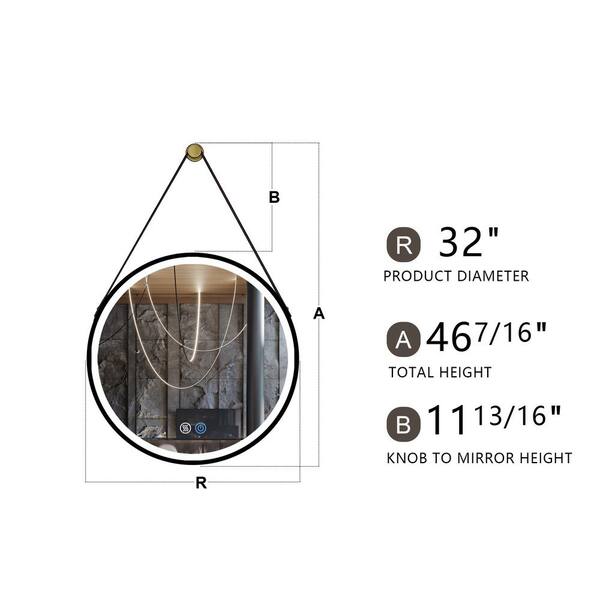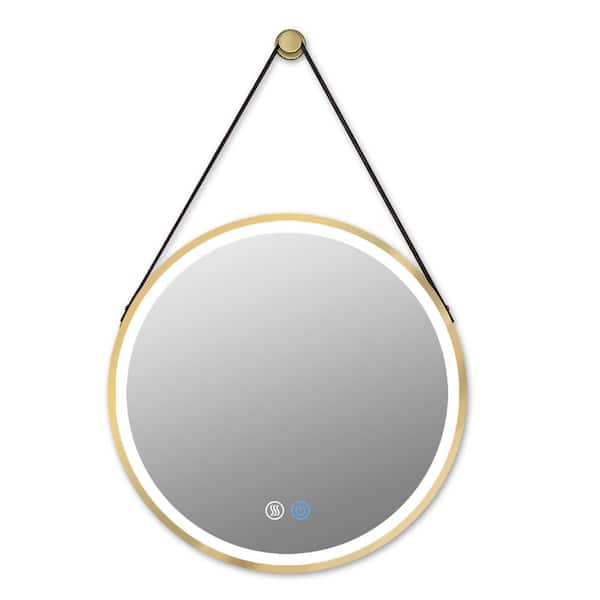 32 in. W x 32 in. H Large Round Framed Anti-Fog Wall Mounted Lighted Bathroom Vanity Mirror in Gold