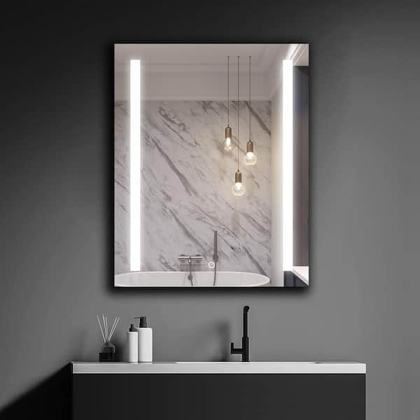 Depp 24 in. W x 30 in. H Rectangular Frameless Anti-Fog Wall Mount Bathroom Vanity Mirror with LED Light