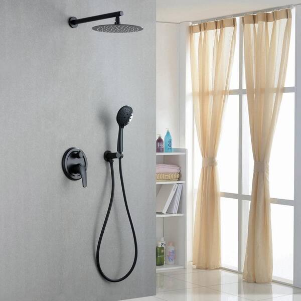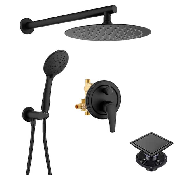 Dowell 5-spray 10 in. Shower Head Wall Mount Fixed and Handheld Shower Head 2.5 GPM in Black, with Shower Floor Drain