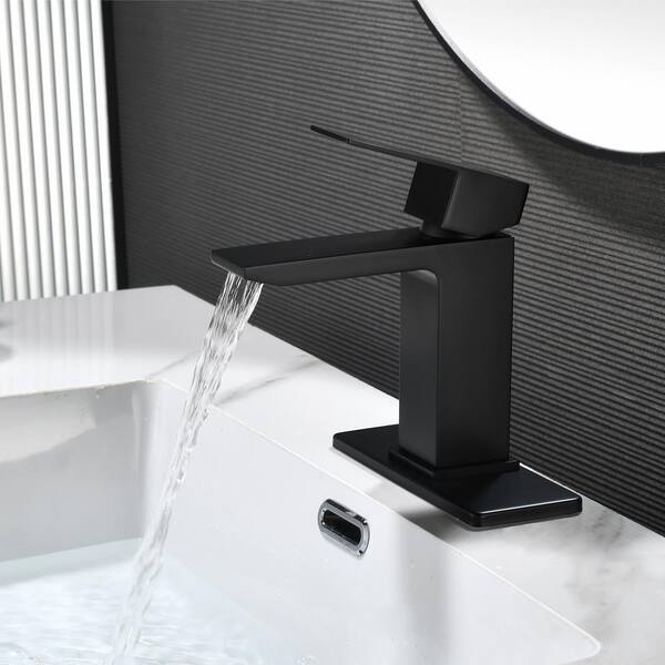 Single Handle Single Hole Bathroom Faucet with Pop-Up Drain Vanity Sink Faucet in Matte Black