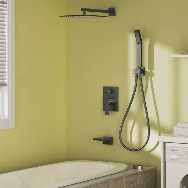 Viki 3-Spray Patterns with 1.8 GPM 12 in. Wall Mount Dual Shower Heads with Waterfall faucet in Matte Black