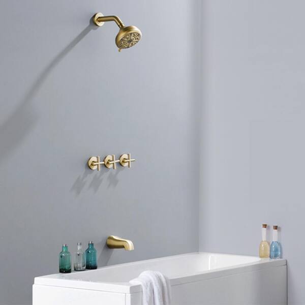 Viki Triple Handle 10 Spray Patterns 1-Spray Tub and Shower Faucet 3.5 GPM in Brushed Gold Valve Included, Leak Free