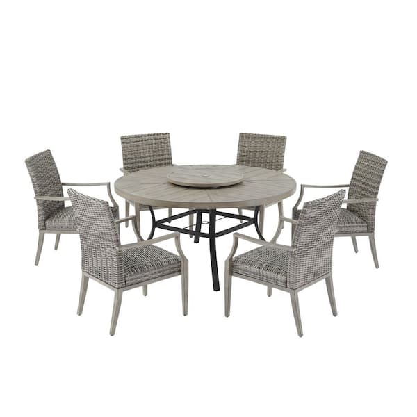 Allure 7-Piece Wicker Outdoor Dining Set, Dining Armchairs and Round Dining Table with Lazy Susan