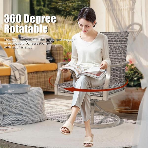 Allure 7-Piece Wicker Outdoor Dining Set, Swivel Dining Chairs and Round Dining Table with Lazy Susan