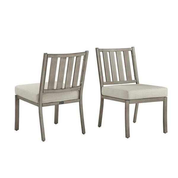 Aluminum Patio Outdoor Dining Chair with Cast Silver Sunbrella Cushion (2-Pack)