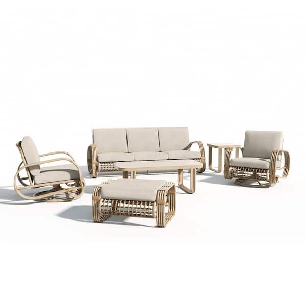 Arsterie 6-Piece Aluminum Outdoor Conversation Set with Beige Cushions