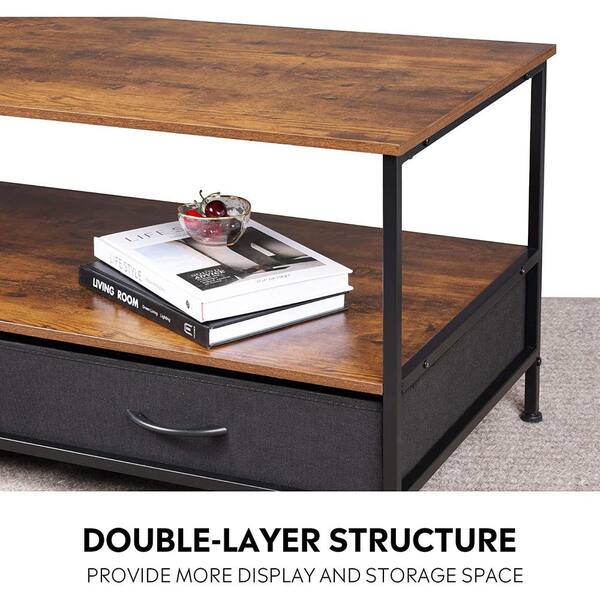 SMT 42 in. Rustic Brown Rectangle Wooden Coffee Table with Storage Shelf And 2 Living Room Fabric Drawers