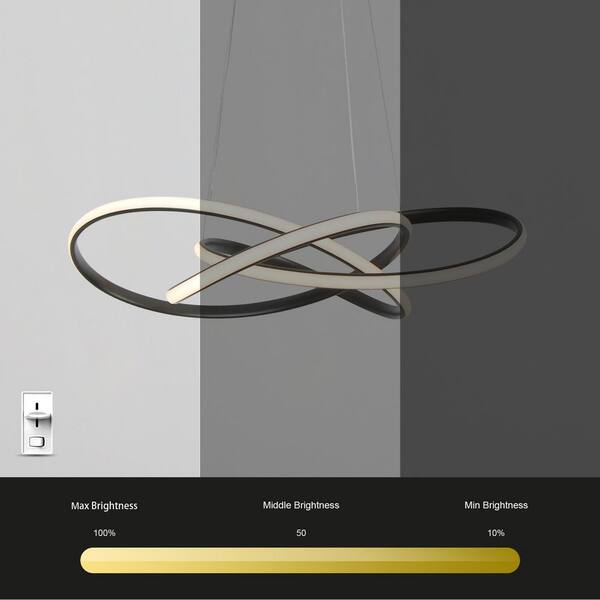 1-Light 23.6 in. Dimmable Integrated LED Black Swirl Chandelier for Dining Room Entrance