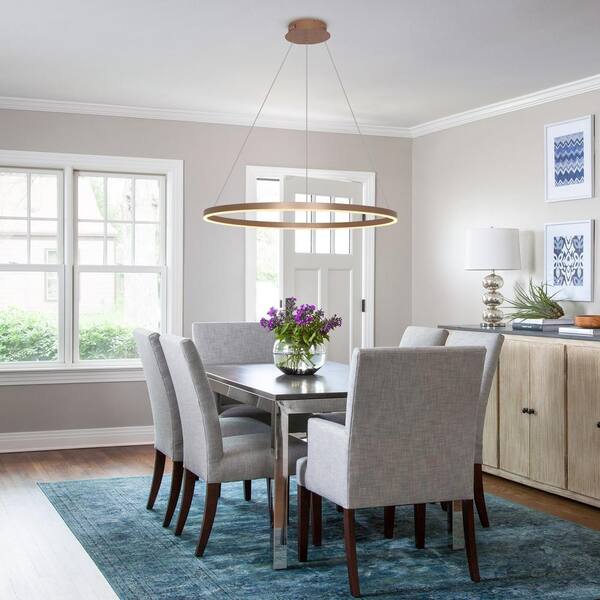 1-Light 32 in. Dimmable Integrated LED Gold Circle Ceiling Chandelier for Living Dining Room, Remote Control
