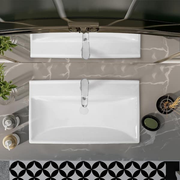 Springfield 31.90 in. Rectangular Ceramic Vanity Top Bathroom Sink in White with Overflow and Single Faucet Hole