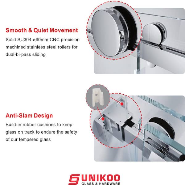 UKD01 46 to 49 in. W x 80 in. H Double Sliding Frameless Shower Door in Chrome, EnduroShield 3/8 in. Clear Glass