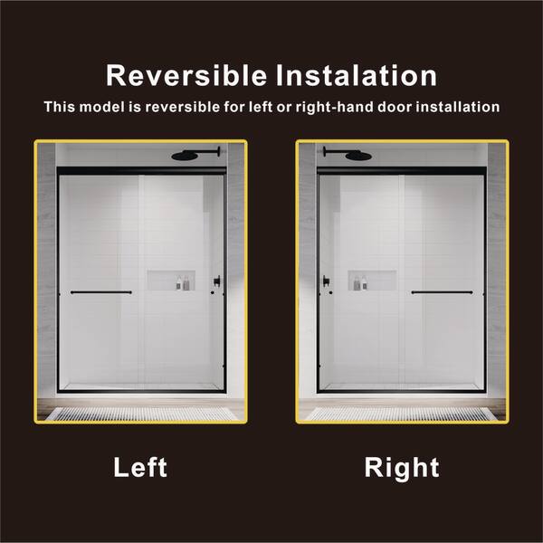 UKD12 50 to 55 in. W x 76 in. H Double Sliding Semi-Frameless Shower Door in Matte Black, EnduroShield Clear Glass