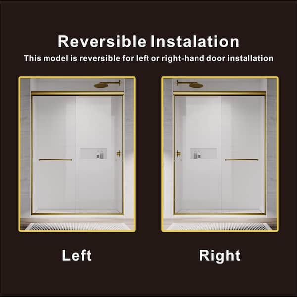 UKD12 50 to 55 in. W x 76 in. H Double Sliding Semi-Frameless Shower Door in Satin Brass, EnduroShield Clear Glass