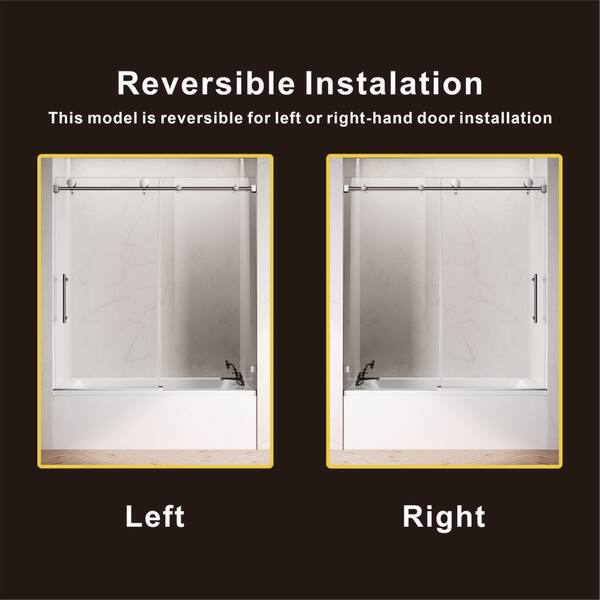 UKS03 60 in. W x 66 in. H Sliding Frameless Bathtub Door in Chrome with EnduroShield 5/16 in. SGCC Clear Glass