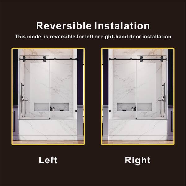UKS04 56 to 60 in. W x 66 in. H U-Channel Sliding Frameless Bathtub Door, Matte Black, EnduroShield 3/8 in. Clear Glass