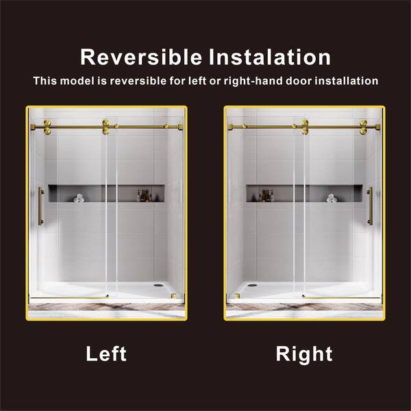 UKS04 56 to 60 in. W x 76 in. H Sliding Frameless Shower Door in Satin Brass, Enduro Shield 3/8 in. SGCC Clear Glass