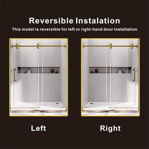UKS04 56 to 60 in. W x 84 in. H U-Channel Sliding Frameless Shower Door in Satin Brass, EnduroShield 3/8 in. Clear Glass