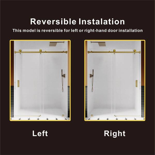 UKS05 46 to 49 in. W x 76 in. H Sliding Frameless Shower Door in Satin Brass, EnduroShield 3/8 in. SGCC Clear Glass