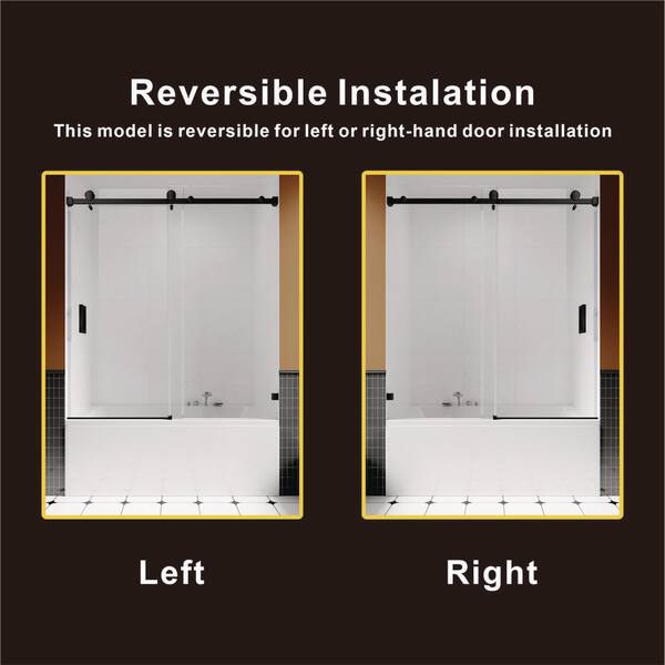 UKS05 56 to 60 in. W x 66 in. H Sliding Frameless Bathtub Door in Matte Black with EnduroShield 3/8 in. SGCC Clear Glass
