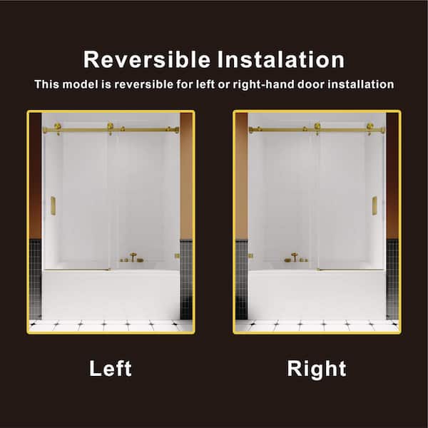 UKS05 56 to 60 in. W x 66 in. H Sliding Frameless Bathtub Door in Satin Brass with EnduroShield 3/8 in. SGCC Clear Glass