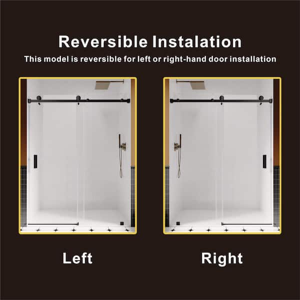 UKS05 66 to 72 in. W x 80 in. H U-Channel Sliding Frameless Shower Door in Matte Black, EnduroShield 3/8 in. Clear Glass