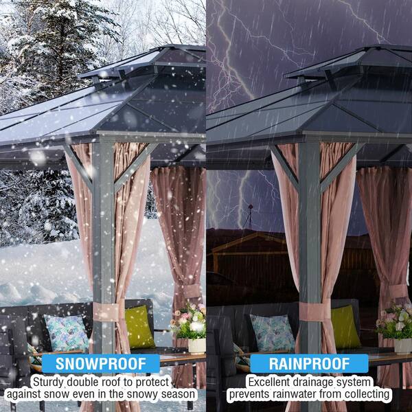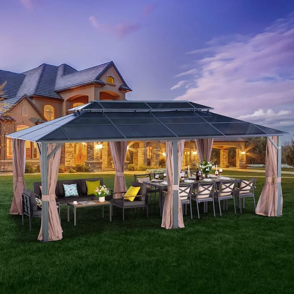 12 ft. x 20 ft. Light Gray Aluminum Hardtop Gazebo with Double Roof Canopy, Beige Curtains and Netting
