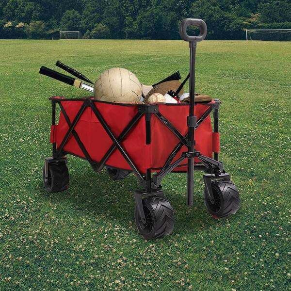 150 lbs. Capacity Folding Wagon Outdoor Cart in Red