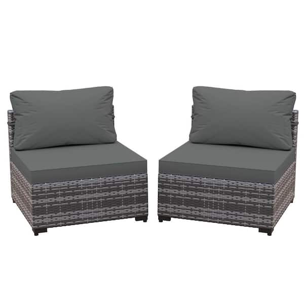 2-Pieces Gray Wicker Patio Conversation Seating with Dark Gray Cushions
