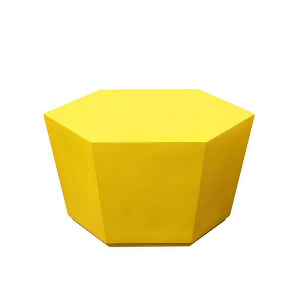 28 in. Outdoor Lemon Yellow Hexagonal Magnesium Oxide Coffee Table, Side Table