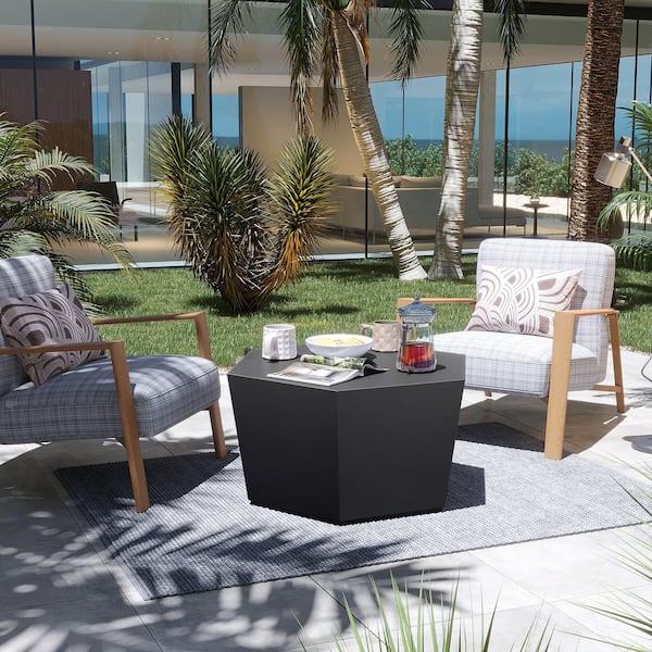 28 in. Porcelain Black Hexagon Concrete Outdoor Coffee Table, Patio Conversation Table