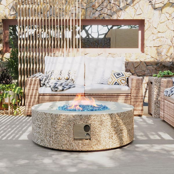 42 in. 50000BTU Outdoor Beige Round Magnesium Oxide Fire Pit Table with Propane Tank Cover