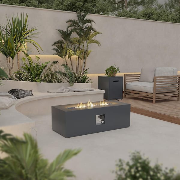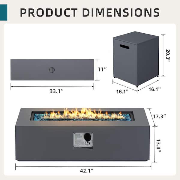 42 in. 50000BTU Outdoor Rectangle Dark Gray Iron Fire Pit Table with Propane Tank Cover and Fire Pit Table Lid