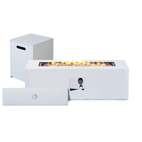 42 in. Rectangular Iron Outdoor White Fire Pit Table with Propane Tank Cover