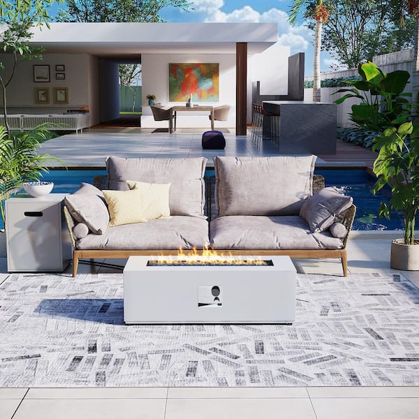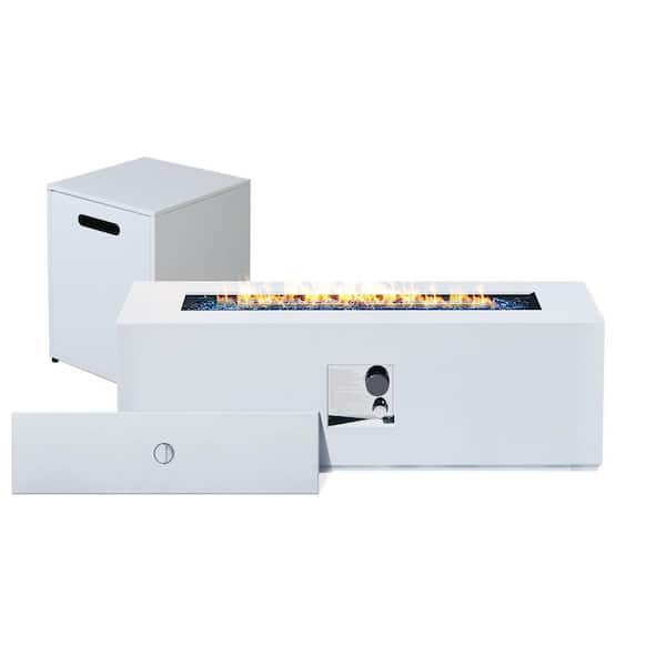 42 in. Rectangular Iron Outdoor White Fire Pit Table with Propane Tank Cover