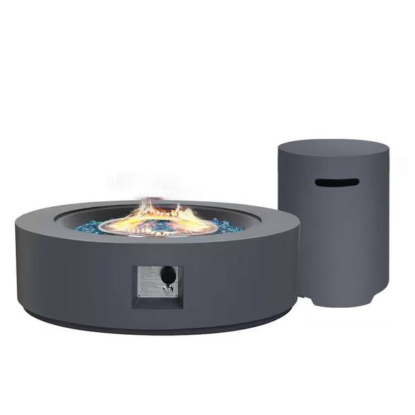 42 in. Round Outdoor Concrete Propane Fire Pit with Tank Cover, Dark Gray