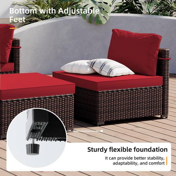 5-Piece Fashion Wicker Patio Conversation Seating with Ottomans in Red