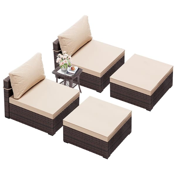 5-Piece Patio Conversation Seating Set with Ottomans in Beige