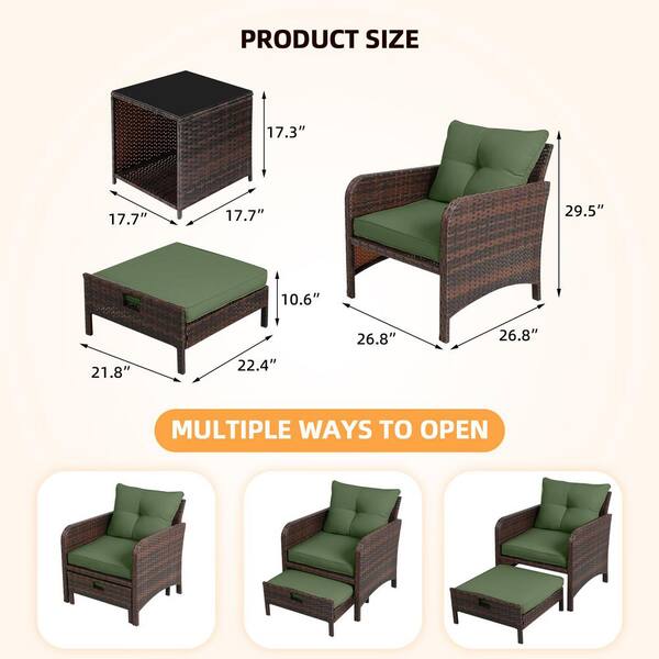 5-Piece Wicker Patio Conversation Set, Outdoor Chairs with Gray Cushions, Coffee Table and Ottomans